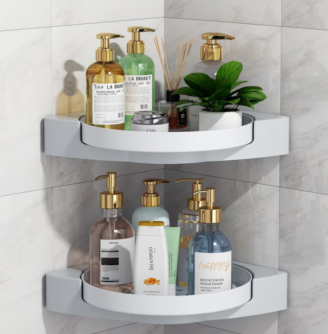 Structura prevăzută cu perforații/elemente de scurgere facilitează eliminarea apei stagnante, menținând prosoapele, gelurile de duș sau bureții uscați și prevenind apariția mucegaiului – ideal pentru mediile umede din baie.