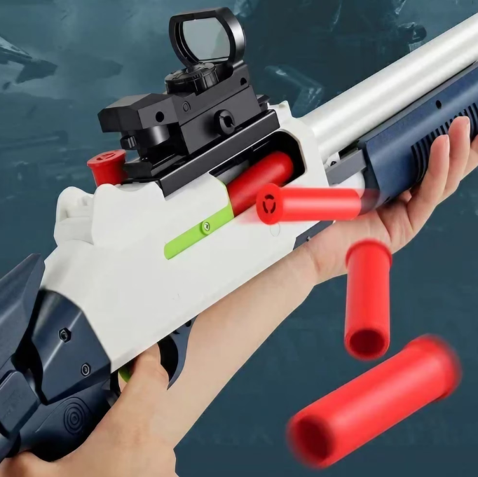 Transforma joaca intr-o aventura plina de actiune cu aceasta pusca de jucarie tip shotgun, ideala pentru copii pasionati de jocuri dinamice si tactice!
