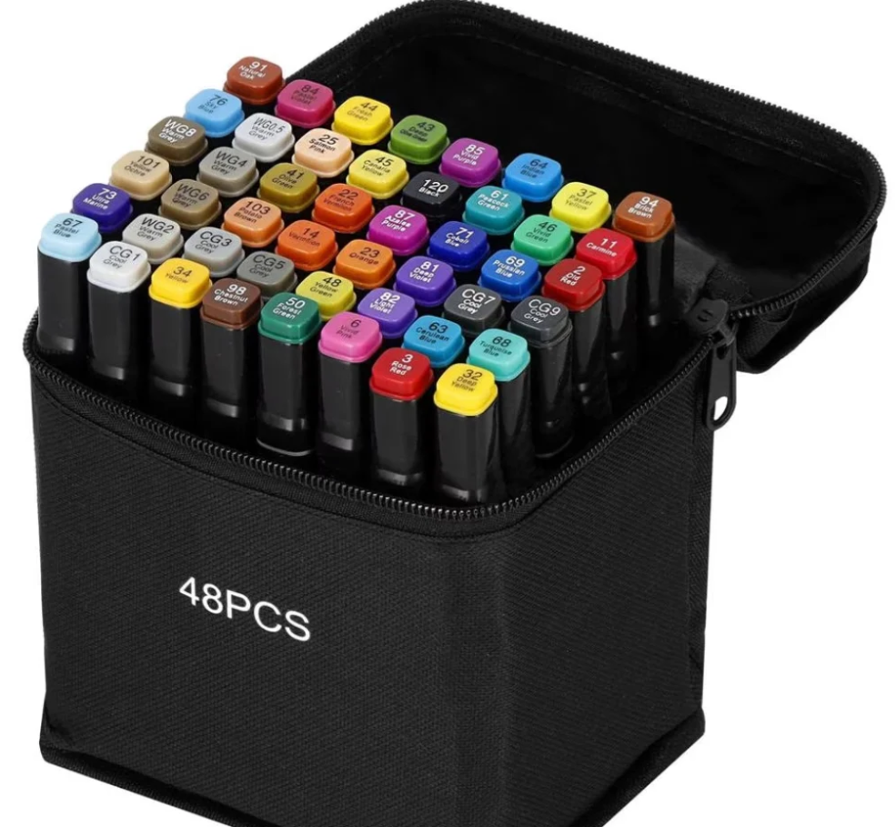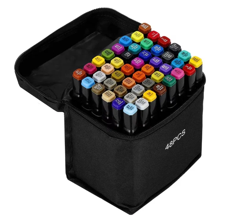 Un set de 48 de markere in culori saturate, diverse, este ideal pentru toti cei pentru care desenul este un hobby sau o activitate de zi cu zi. Pot fi utilizate in diverse tipuri de desen, de la ilustratii cu portrete si peisaje pana la scheme tehnice.