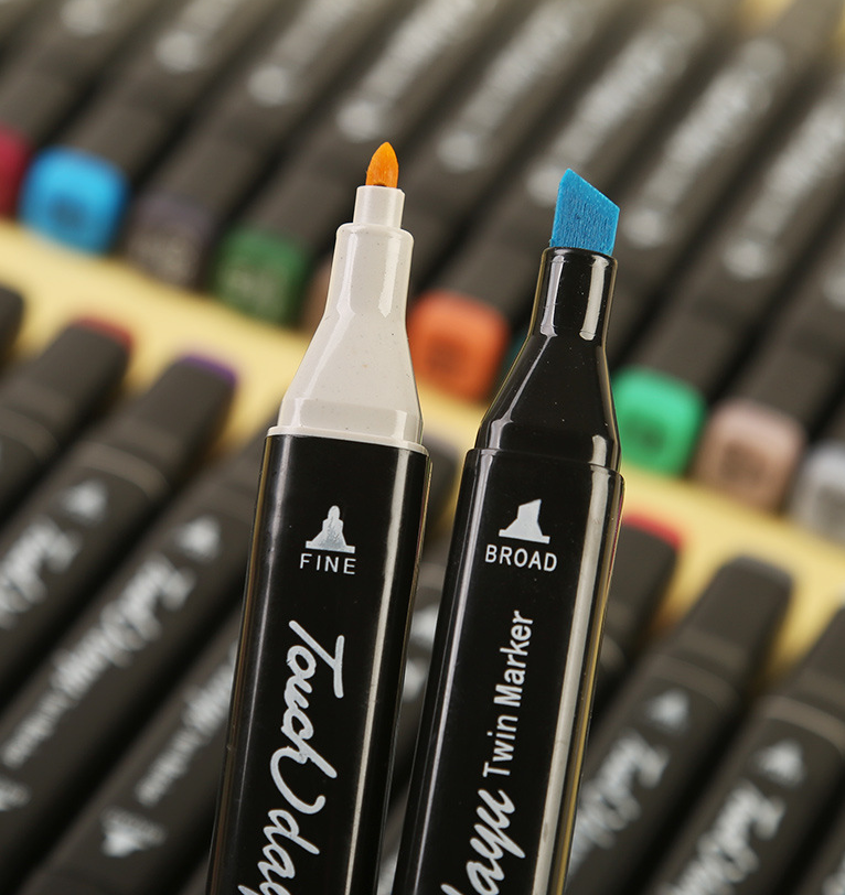 Marker de alcool fata-verso cu doua tipuri de varfuri (lat si subtire) - ideale pentru colorare si contur;