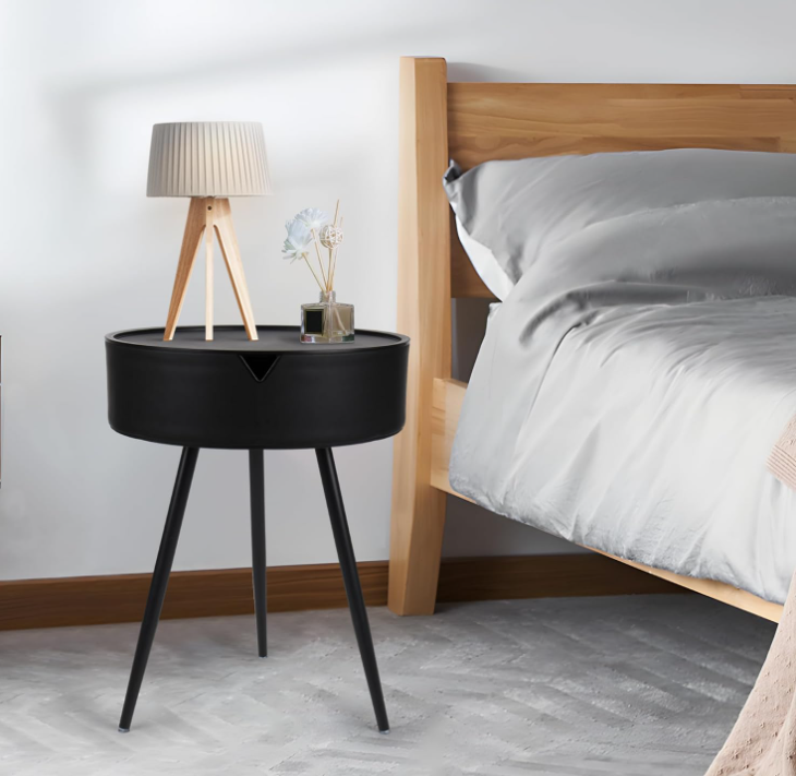 【MATERIAL & DIMENSIUNI】: Noptiera este realizata din material PP + picioare din metal. Dimensiunea mesei: 40*54,5 cm. Suprafata este neteda si prietenoasa cu mediul, iar marginile rotunjite previn eventualele accidente, creand un mediu sigur.